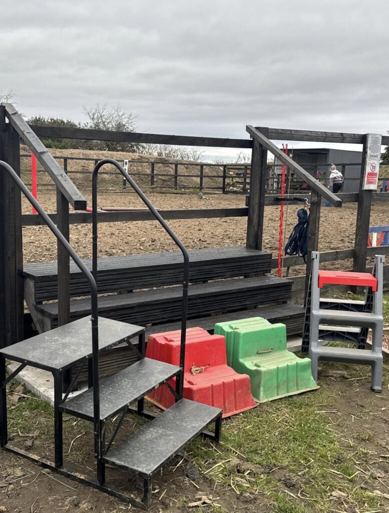 One of the key improvements has been the addition of new mounting blocks, providing greater flexibility for riders when getting onto a horse. Mounting can often be one of the most challenging aspects of riding, particularly for those who are new to the sport or who have mobility challenges. Having a range of mounting options available allows the riding school to better support riders with different needs.